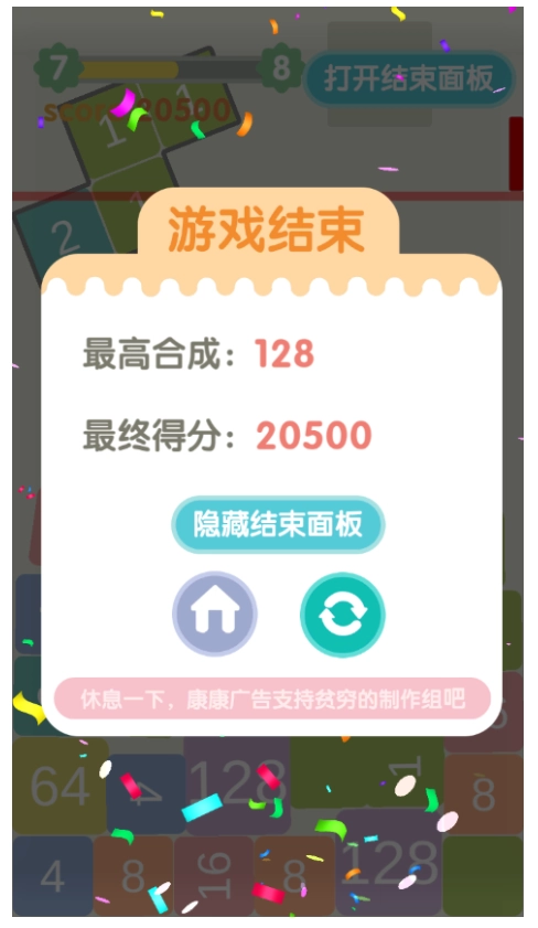 4、小清新的风格,舒适的背景色,非常有趣的挂机体验,感受新的2048合成的欢乐。