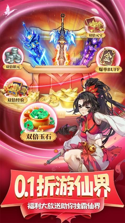 超值福利:“骨折”价格,豪华福利,登录即送珍稀神器、神技、神秘坐骑等,助你快速起飞,开局畅玩!