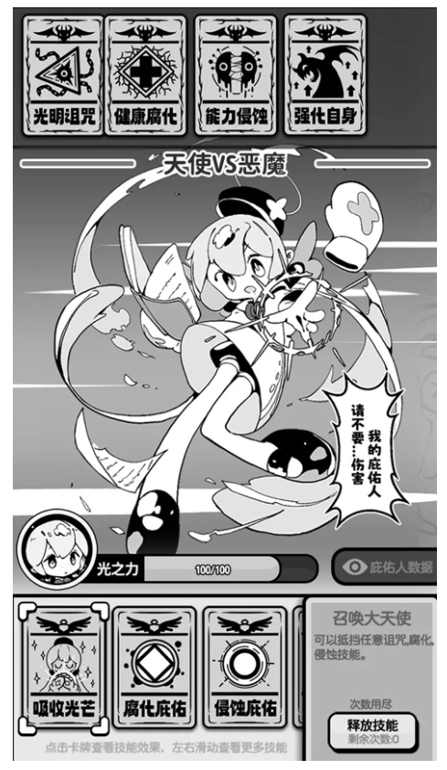 1、在游戏里,玩家将化身为天使,肩负着帮助人类解决各类难题的使命,在体验管理与守护人间的乐趣中传递光明;这里有好玩的休闲卡牌玩法,玩家可以自由收集形形色色的角色和职业,解锁丰富多彩的有趣内容。