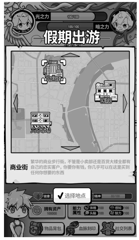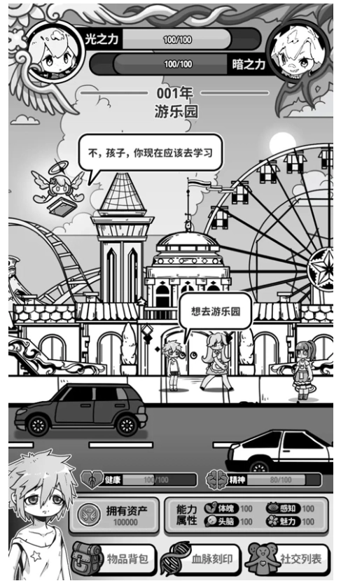 黑白的画面风格,带给您强烈的吸引力,随机性的事件,可以解锁。
