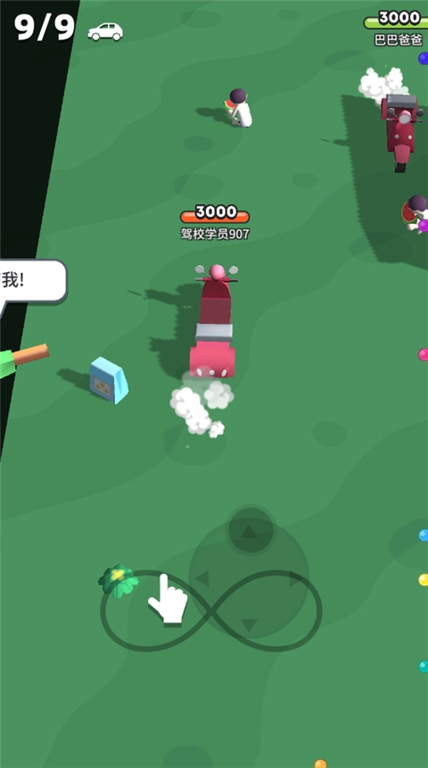相互攻击,直到战胜为止,在一局游戏中会有9名玩家同时开车对战