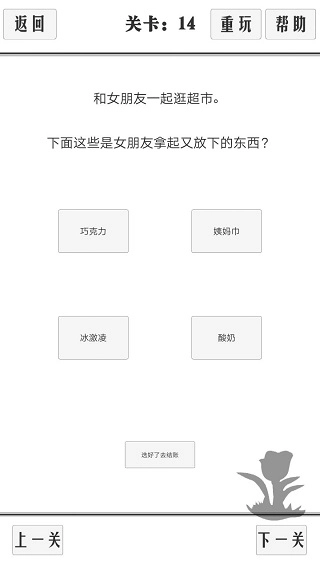 第14关:全部点击,也要点冰淇淋再点不买,不然不行。