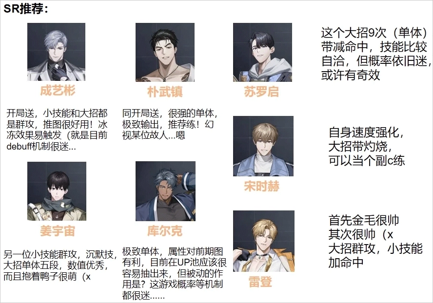 有SSR的话优先练SSR,毕竟数值差距确实不小;不过不少朋友可能面临抽不到SSR的情况,这里就给大家推荐一些值得培养的SR卡。