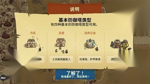 5、基本防御塔类型有四种,分别是弓兵、兵营、法师公会、火炮;