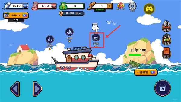 1、操控船只前往不同海域,调整鱼钩深度瞄准目标区域,耐心等待鱼儿上钩后收竿。