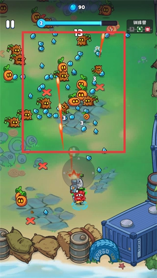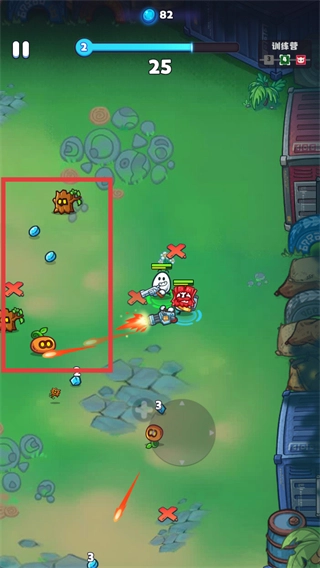 3、当处于敌人密集的区域时,要集中攻击【红框内】的集群敌人,同时尽可能多地收集【蓝色道具】和【橙色道具】,以此来提高整体收益。