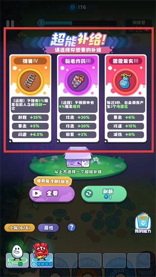4、打开【超能补给】界面,挑选【弹幕Ⅳ】【秘书好疗愈Ⅲ】这类补给,点击相应选项来增强战斗能力。
