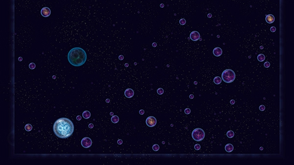 5、唯一的变量是玩家操纵星球喷出的气泡,气泡的作用一是移动星球,二是可以推开附近的星球,利用气泡的功能,玩家在接近其他星球的时候,可以利用惯性和推力推开接近自己的红色星球。