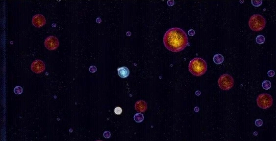 这款游戏有很多玩法,会遇到好几种不同的“星球”,有中立球、有反物质球、还有固定的太阳球等等...但大多数玩法的最终目的都是为了让自己成为“最大的星球”。