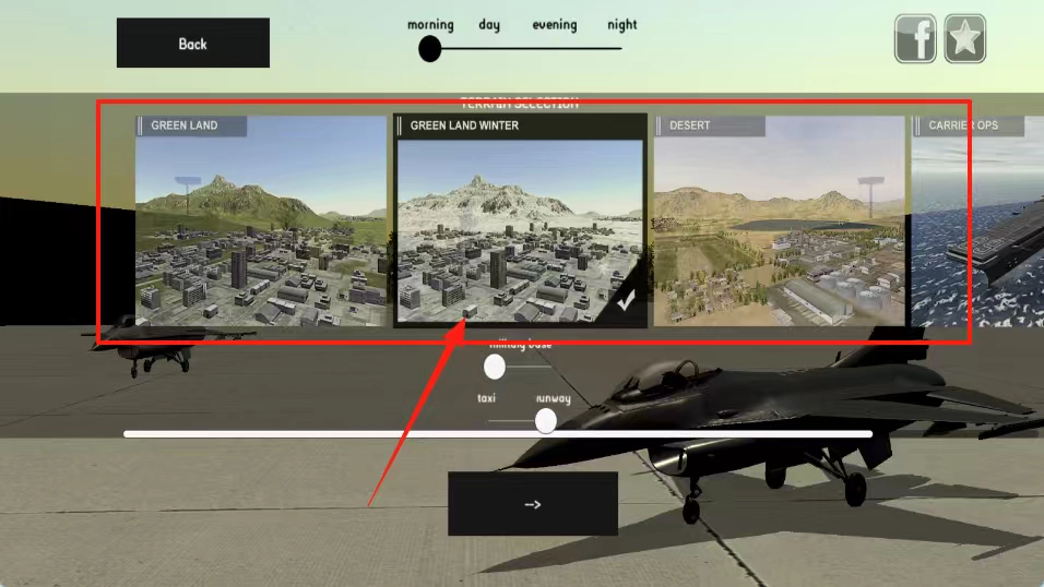 2、挑选带有勾选标记的GREEN LAND WINTER地图,以此明确冬季场景的任务背景,从而为后续的飞行挑战筑牢环境根基。