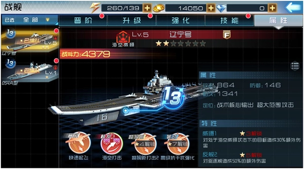 4、3星解锁特性Ⅰ,各战舰特性和效果不同;