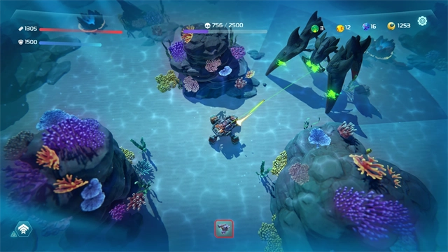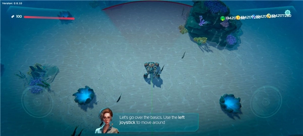 用双手操控游戏,用手指在屏幕上滑动让潜水员朝任意方向移动,也可以借助虚拟摇杆。找到一处矿井——那是个亮着蓝色灯光的深凹区域,潜入进去就能开始挖掘、搜寻资源。由于你没有背包,得亲自把资源拖到机械装置上。一旦听到攻击的声响,或是看到计时器归零,就得马上离开矿井。瞄准并射击来攻击外星人,收集各类资源以解锁强力升级:改良你的武器、提升钻头的冲击力、加快喷气背包的最大速度,还有诸多其他升级选项——每一种都能让你和你的穹顶获得最大的生存可能!要记住:成群的怪物不会给你任何喘息之机。你会成为幸存者与英雄中的一员,还是在《海洋守护者》的蛮荒自然里殒命?