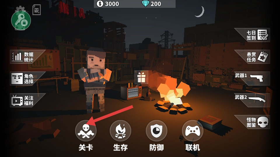 1、点击【关卡】,进入剧情任务,开启消灭敌人的冒险之旅。