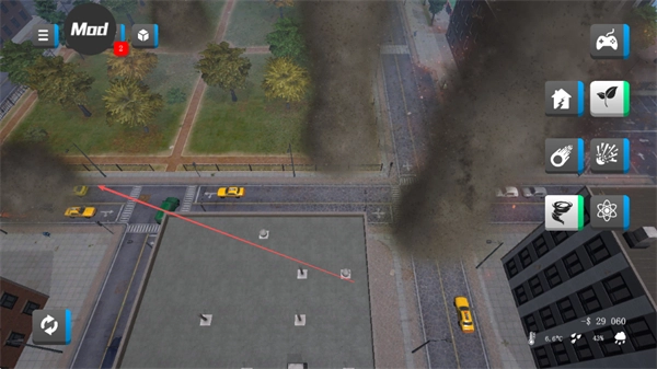4、持续运用各类灾害工具,毁坏城市里的建筑、植被、交通等设施,逐步累积分数,感受城市被粉碎的乐趣。