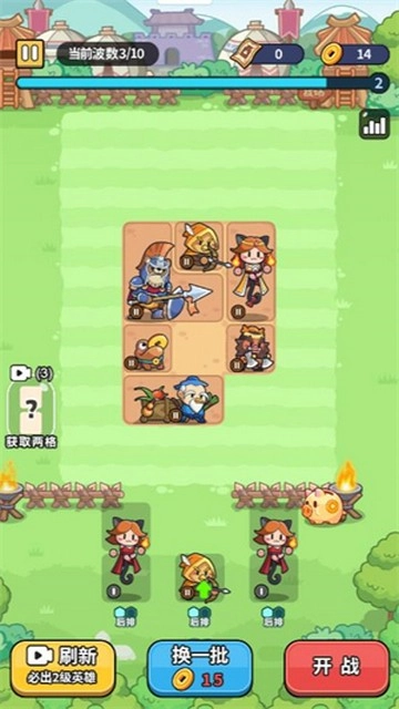 3、战斗中利用英雄的技能和攻击,击败敌人,推进波数进度。