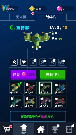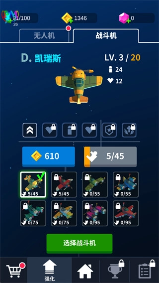 2、玩家能够通过对战机与无人机进行升级,从而获取更为强大的攻击技能;