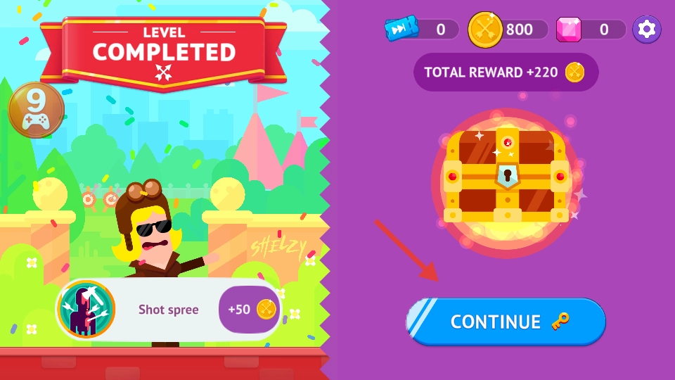 3、击败对手后,点击【CONTINUE】按钮开启宝箱。