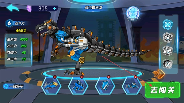 1、升级机甲部件,提升战斗力、生命值等属性,点击去闯关进入关卡。