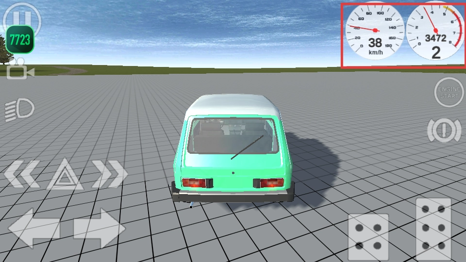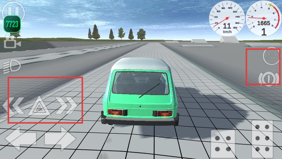 3、使用左侧控件控制车辆方向,点击右侧引擎启动按钮,开始驾驶车辆。