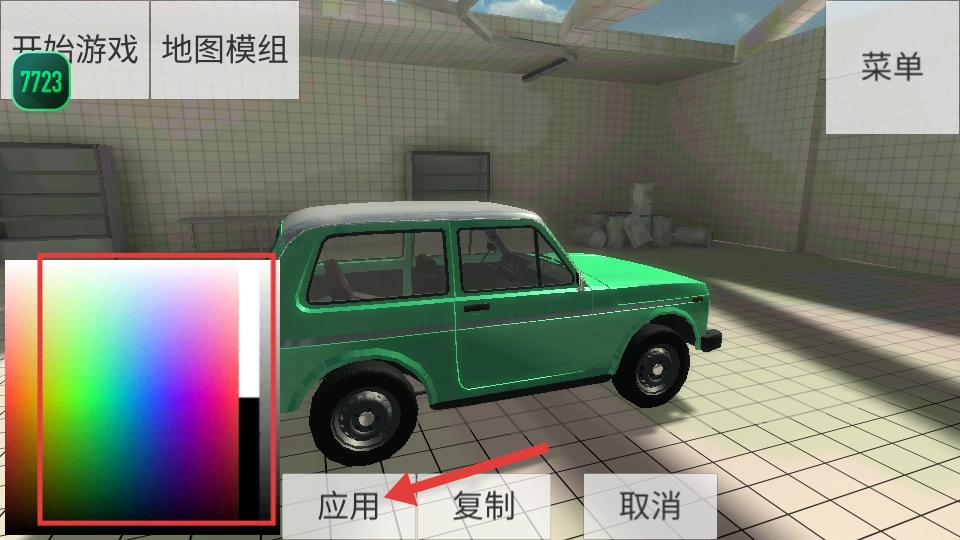 2、选择颜色后点击【应用】,确认颜色设置,完成车辆自定义。