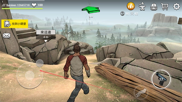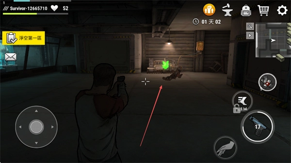 2、在营地等区域拾取物资如枪械,提升生存和战斗能力。