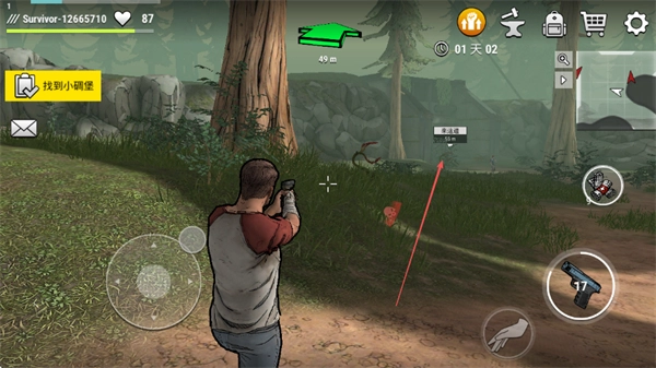 1、根据任务指引如找到小碉堡,操控角色在野外移动,探索地图。
