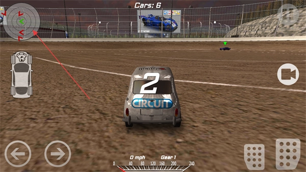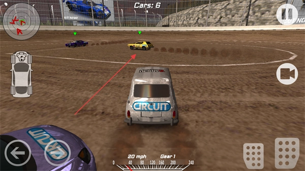1、观察左上角小地图,了解赛道和其他车辆位置,驾驶赛车在泥地赛道行驶。