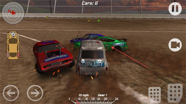 4、利用右侧操作区域控制赛车加速,持续冲撞其他赛车,在混乱中提升排名。