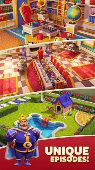 3、玩家可以通过完成不同关卡获取星星与金币,这些资源能够用于解锁城堡里的各个区域,像大厅、茶室和花园等,还能对这些区域进行装饰。