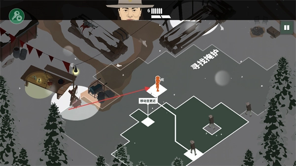 2、操控角色在地图中移动,根据寻找掩护的提示,前往安全区域躲避潜在危险。
