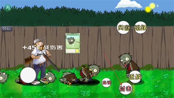 1、点击射击攻击僵尸,同时可通过闪避,跳跃躲避攻击,保护自身。
