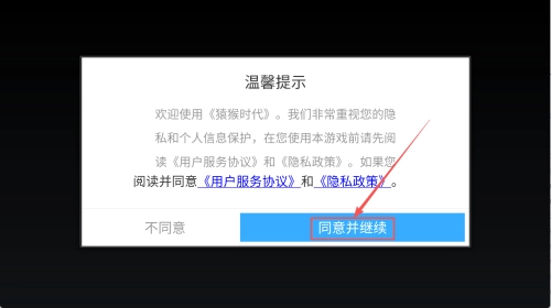 1、同意协议:在游戏启动界面,点击“同意并继续”按钮,接受用户协议。