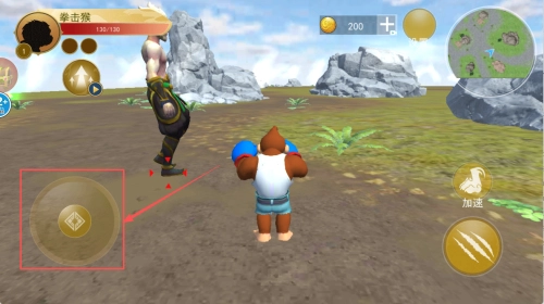 1、控制小猴子在初始区域内行动,搜寻并战胜弱小的生物,将其吞噬后获得营养,当营养积累到特定程度时就能触发升级进化。