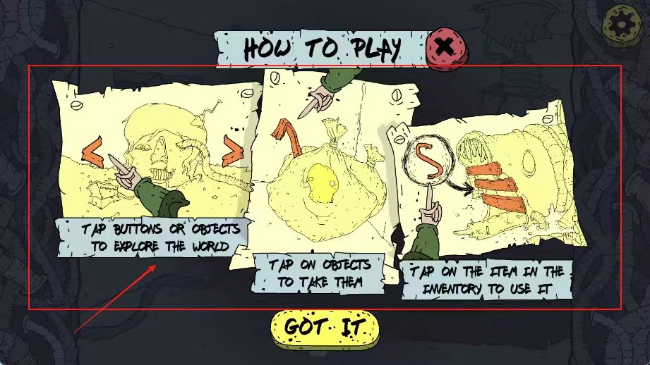 4、阅读操作说明后点击GOT IT确认,点击探索物品拾取并使用道具,正式开始解谜。