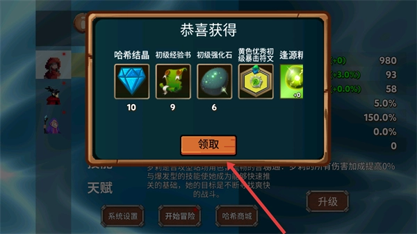 4、完成探索后领取奖励(如【10哈密结晶】等道具),积累资源用于角色养成与后续冒险。