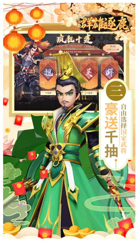 豪礼千抽,轻松领取,自由选择不同的国家发展,解锁各种强大的武将战斗。
