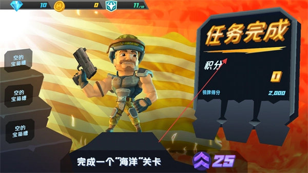 4、达成完成一个海洋关卡的任务,显示任务完成,获取对应奖励。