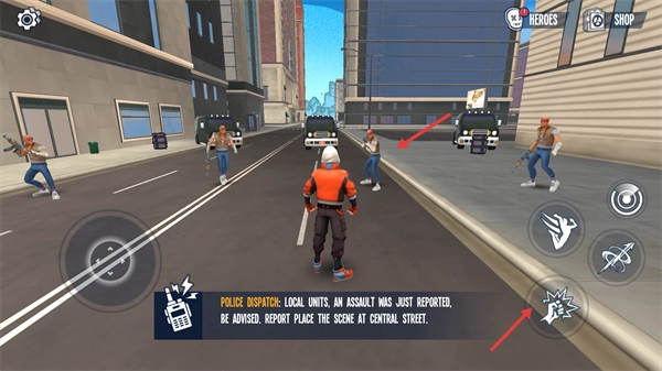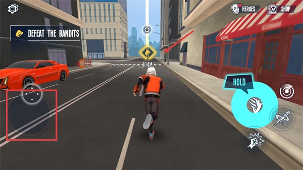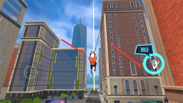 1、进入游戏,长按【HOLD】按钮,操控角色在建筑物中快速移动。