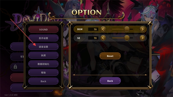 2、进入OPTION界面后,在左侧选项栏中点击语言设置选项,就能进入对应的语言配置页面。
