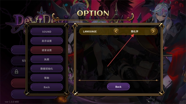 3、在语言配置页面里选择简化字作为游戏的显示语言,完成语言选项的选定操作。