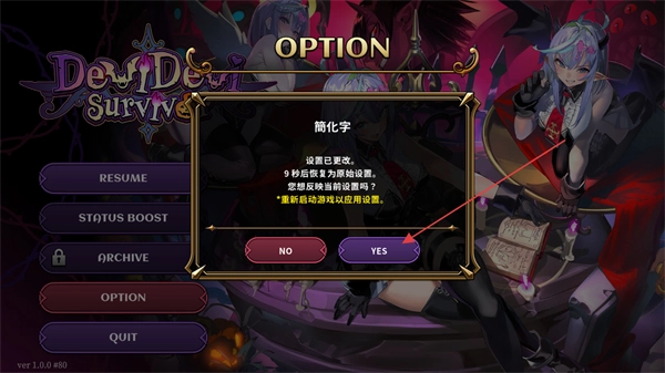 4、弹出语言设置确认弹窗后点击YES按钮确认设置,重启游戏即可应用简化字的中文语言配置。
