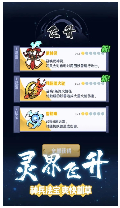 2、修仙题材设定,神兵法宝、仙家秘籍,自由修仙,享受爽快割草的欢乐,斩妖除魔,多样化的玩法可以体验,玩家享受无比刺激的冒险模式,完成各种的任务,收获超多的乐趣。