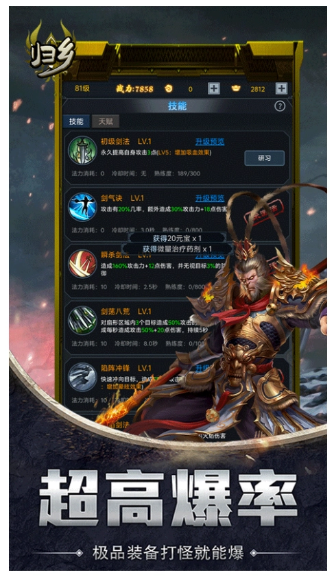 超高的游戏爆率,打怪就能爆出装备,游戏的奖励可以让您不断的收集。