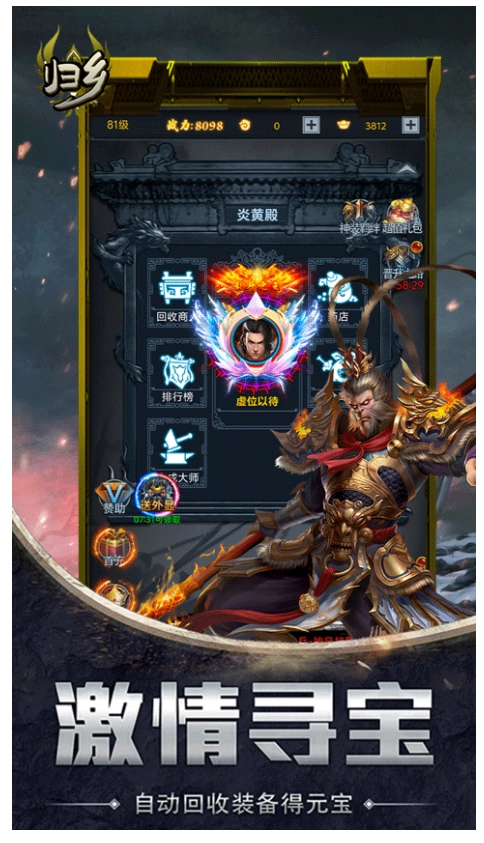 玩家开启激情寻宝的过程,大量的装备自动回收,元宝和奖励自由领取。