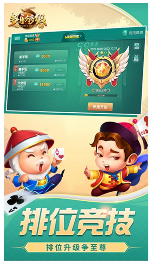 多乐够级是一款十分有趣的休闲益智游戏,它采用了精美的卡通画面风格,不仅有单机版和联网版,还涵盖了开点发四、大王2杀1等玩法,创新了不少趣味够级内容,玩家玩得越久越觉得刺激。游戏设有进贡和非进贡场次,无需注册,安装后就能直接开始游戏,不用担心凑不齐人,每天都有数十万玩家在线,随时都能体验。玩家可以感受无限闯关的魅力,而且够级规则严谨又有趣,在一波三折的较量中需要斗勇、斗智、斗法,掌握其中的竞技技巧,就能让游戏体验更加丰富有趣。感兴趣的玩家可别错过了,随时都能尽情畅玩。
