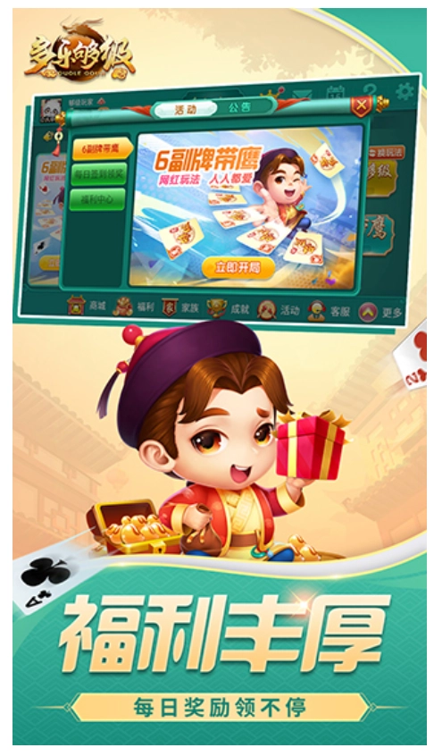 4、参与活动,签到领奖,每日游戏豆送不停,游戏的奖励多多,玩家可以轻松的获取,并且还有很多轻松的出牌方式,收获放松的桌游乐趣,喜欢这一扑克玩法,那就赶紧来多乐够级试试。
