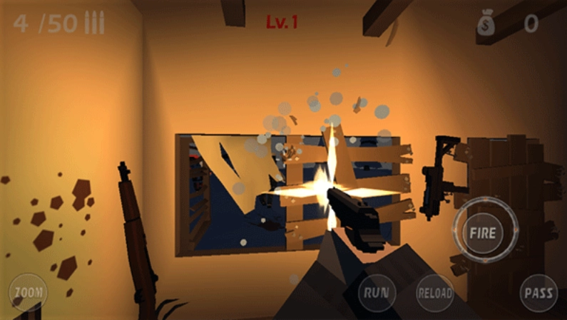 4、要留意爆头攻击,初始手枪命中头部两枪就能消灭一个初级僵尸。另外第一波时每个窗户位置只会出现1个僵尸,总共只有5个,不用急着去修补窗户,得养成随时更换弹夹的习惯,避免后期僵尸数量太多,来不及换弹夹。