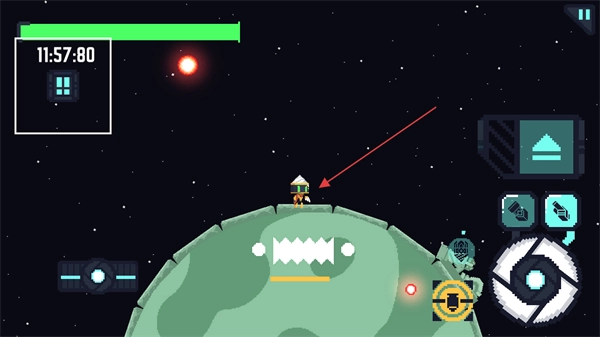 1、操控角色在星球表面移动,定位目标设施如炮台,准备发起攻击。