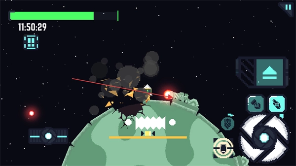 2、使用武器攻击目标,触发爆炸特效破坏星球设施,积累破坏进度。
