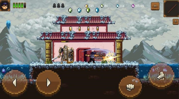 2、左侧摇杆控制移动,右侧则是攻击和跳跃。
